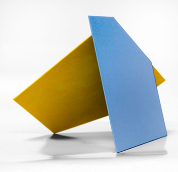 Dirk Gottfriedts Ansatz, dass selbst kleinste Veränderungen große Auswirkungen auf seine Skulpturen ausüben, und welche Vielfalt bereits in wenigen geometrischen Grundformen verankert ist, zeigt sich in seinen neuen Arbeiten. Dirk Gottfriedt nutzt farbige quadratische Flächen, aber auch teilweise geschlossene Kreissegmente, die er in unterschiedlichsten Winkeln zusammensetzt und teilweise anschneidet. Durch diese Veränderung entstehen dreidimensionale Arbeiten, die immer wieder anders gestellt werden können, aber - was noch viel wichtiger ist - aus verschiedensten Blickwinkeln betrachtet werden können. Durch jede kleinste Veränderung des Blickwinkels ergeben sich völlig neue Einblicke in die Skulpturen. Plötzlich erscheinen kleine Dreiecke im Hintergrund oder farbige Linien, die zuvor nicht gesehen werden konnten. Die farbig gestalteten Flächen überlagern sich, geben Räume frei und werfen Schatten, die den Skulpturen einen zusätzlichen Reiz vermitteln. Die Variabilität der neuen Skulpturen von Dirk Gottfriedt scheint unerschöpflich zu sein. Ständig ist man als Betrachter dabei, die Skulpturen zu umrunden, um immer wieder neue Einblicke und Formveränderungen wahrzunehmen.