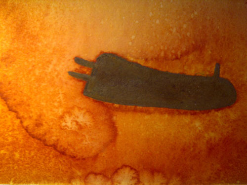 Karl von Monschau, Gründungsinitiator des NeuenAachenerKunstvereins, beschäftigt sich schon lange mit ungewöhnlichen Malmitteln aus Metall- und Bitumenfarben. Über experimentelle Prozesse hintermalt er in gestischer Manier emblemhafte Formen mit Störfeldern. So experimentierte er u.a. mit dem "Sator-Quadrat". Vom Begriff Opferanode ließ er sich anregen, Metallplatten mit Säure, Metallstaub und Bindemitteln zu bemalen, auf die, wie im Schiffsbau, Zinkanoden in freien batterieartigen Formfindungen aufgebracht wurden, die sonst dazu dienen, den Korrosionsprozess auf sich zu ziehen. Rost wird bei Karl von Monschau zum Medium der Malerei.